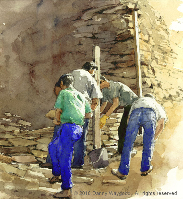 Construction d'un mûr en pierre sèche