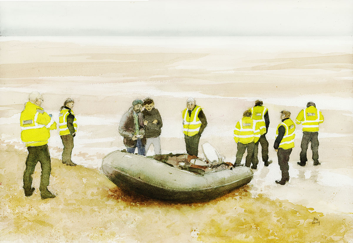 la police britannique surveille une barque abandonnée ll