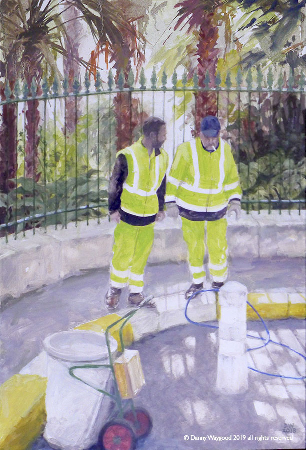 Deux hommes discutent autour d'un tuyau à Béziers